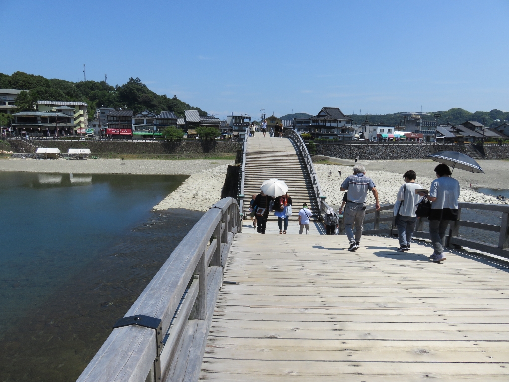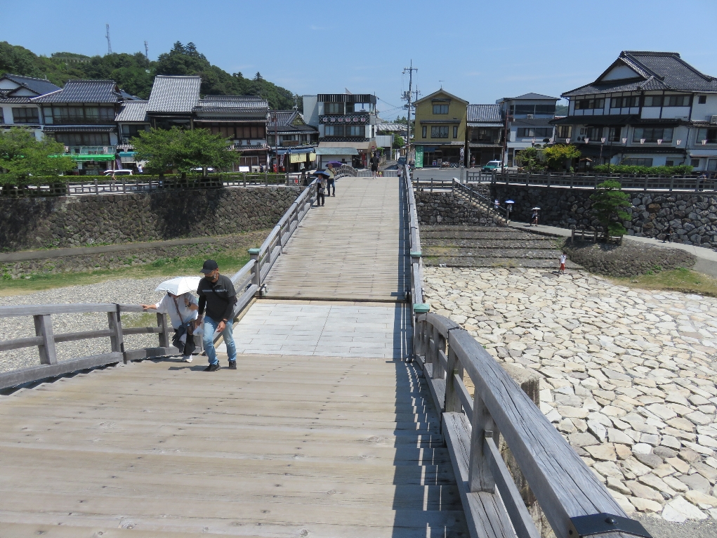 錦帯橋の橋のそばから錦帯橋を撮る(2024/8/3) |
