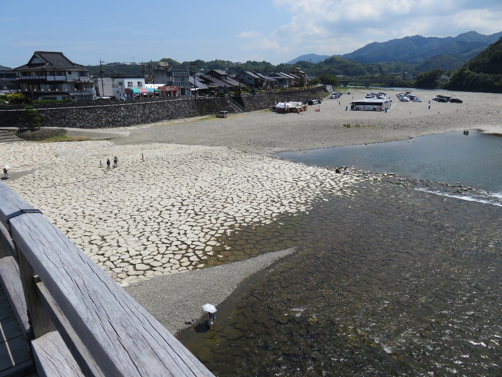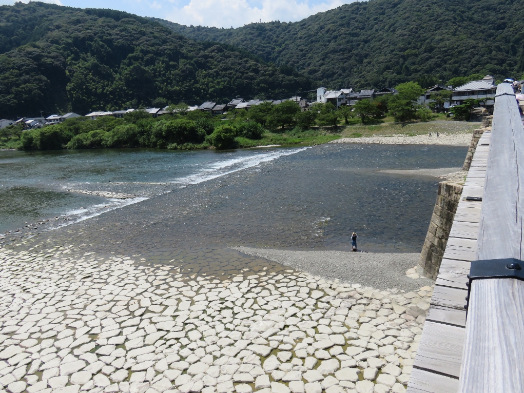 錦帯橋の橋の上から川の様子を撮る(2024/8/3) |