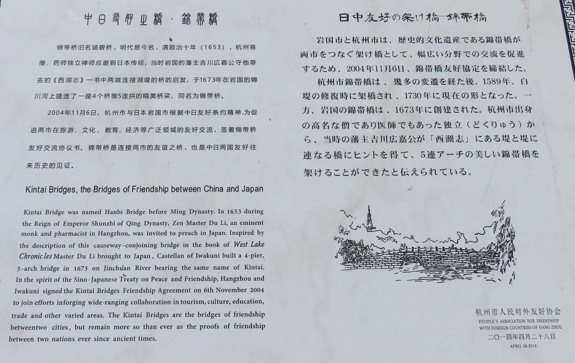 錦帯橋の日中友好の説明版(2024/8/3) |