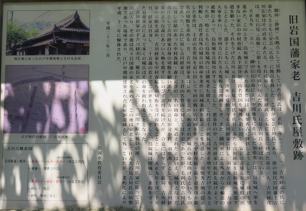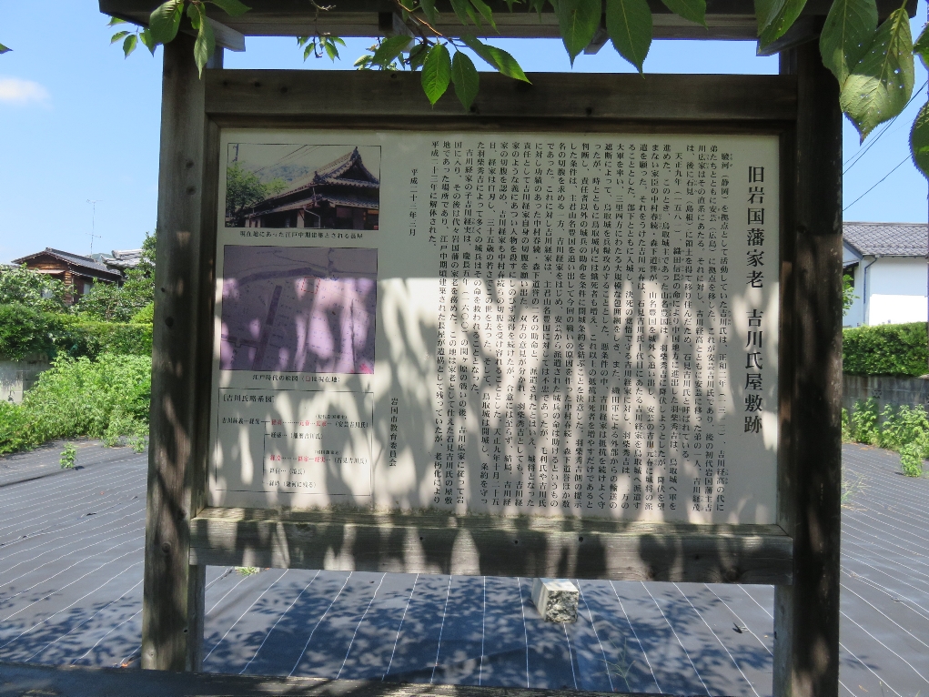 錦帯橋を渡り岩国城側の旧吉川氏屋敷跡の説明版(2024/8/3) |