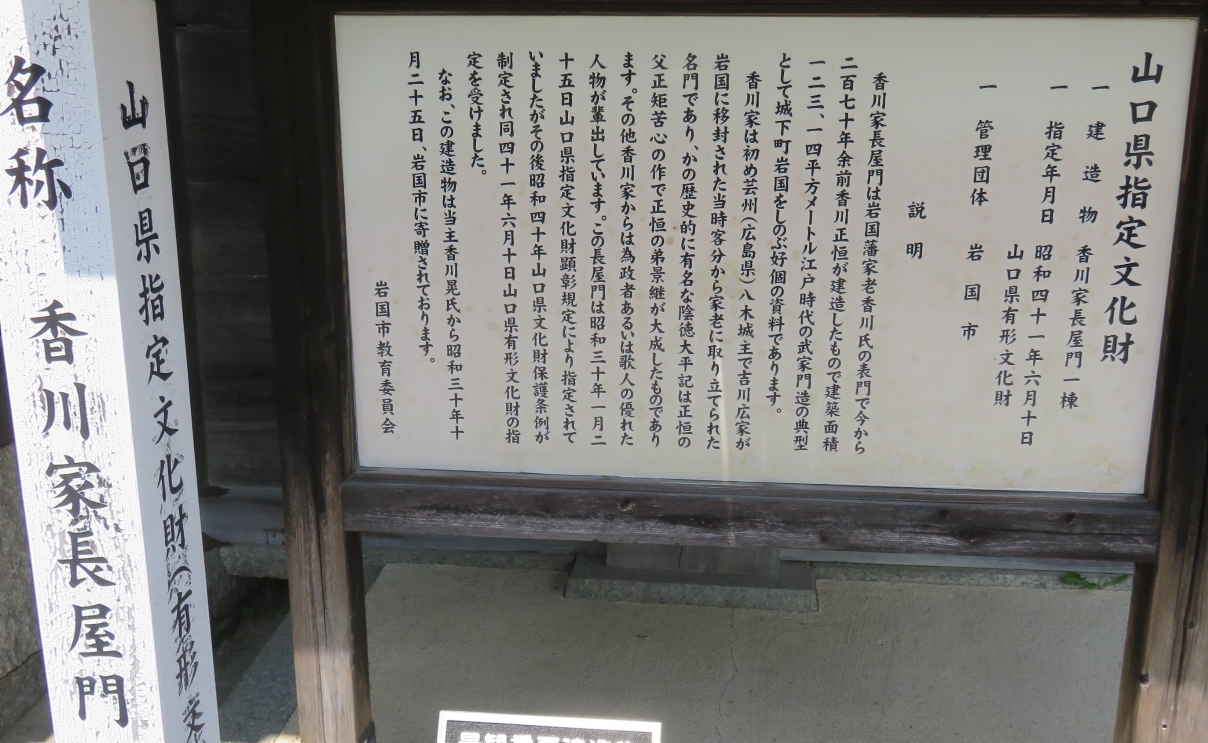 錦帯橋の香川家長屋門の説明版(2024/8/3) |