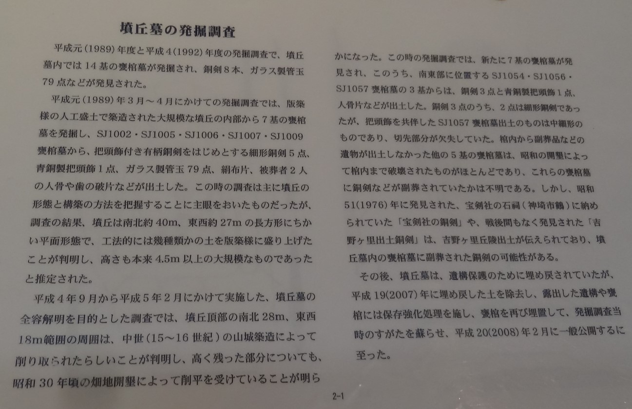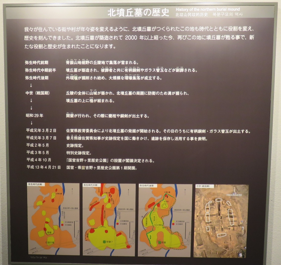| 吉野ヶ里歴史公園の北墳丘墓の中の展示スペースにある北墳丘墓の歴史の説明版(2024/4/17) |