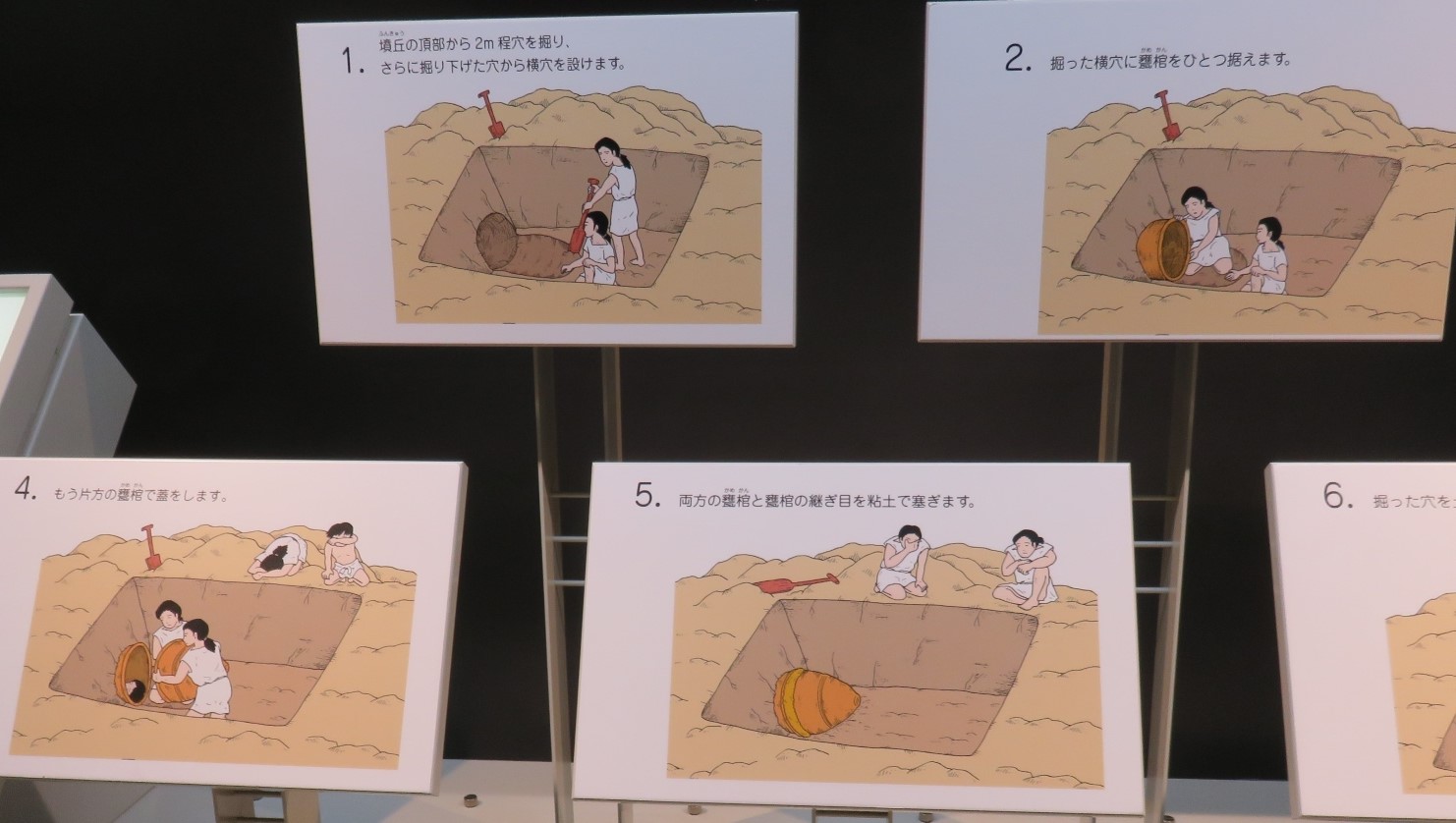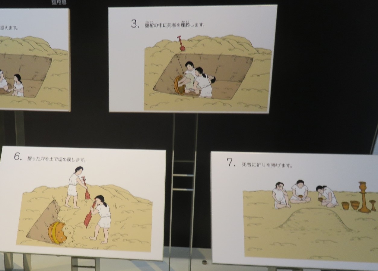 | 吉野ヶ里歴史公園の北墳丘墓の中の展示スペースの中にある北墳丘墓の中の墳墓の作り方の説明版(2024/4/17) |