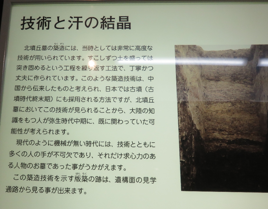 | 吉野ヶ里歴史公園の北墳丘墓の中の展示スペースの中にある北墳丘墓の築造方法の説明版(2024/4/17) |