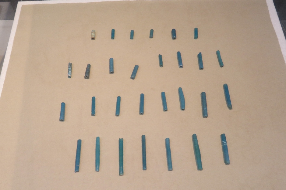 | 吉野ヶ里歴史公園の北墳丘墓の中の展示スペースの中にある北墳丘墓の中の死者の装身具の実物の展示(2024/4/17) |
