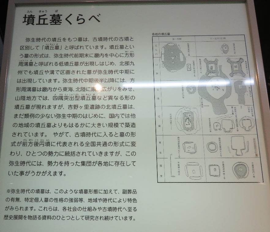 | 吉野ヶ里歴史公園の北墳丘墓の中の展示スペースの中にある墳丘墓のくらべの説明版(2024/4/17) |