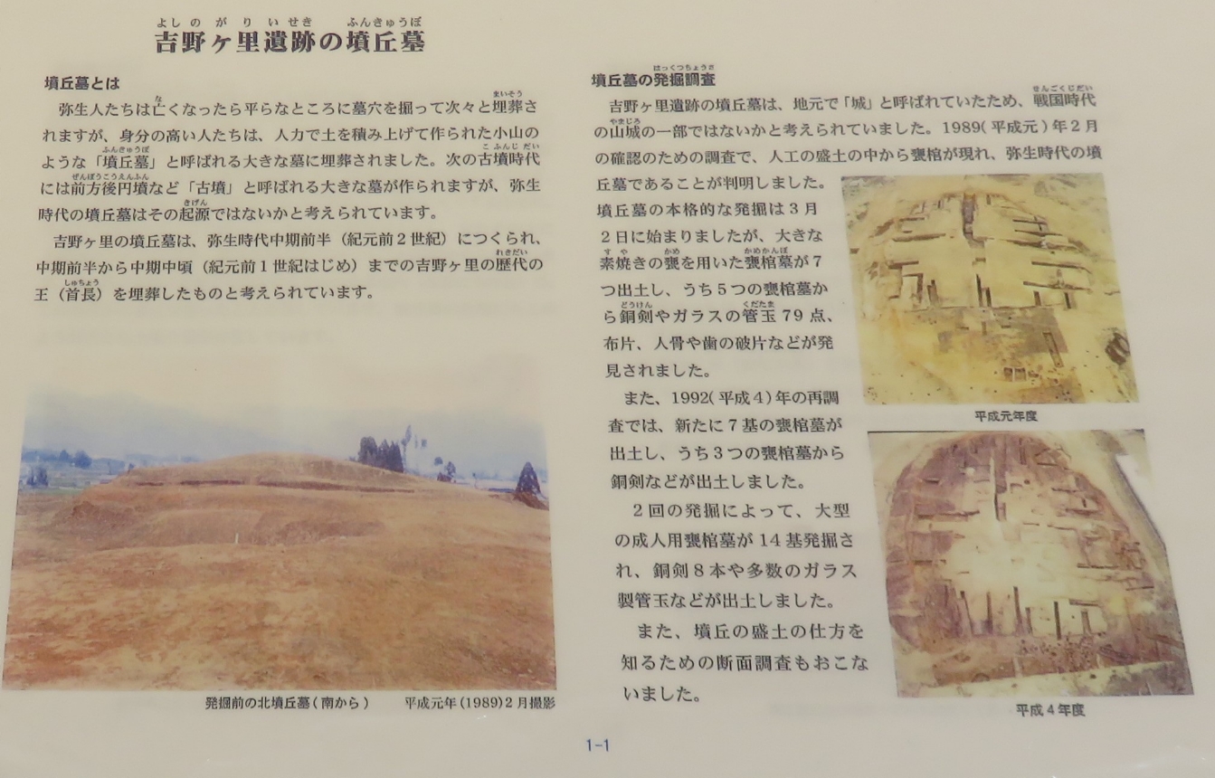 | 吉野ヶ里歴史公園の北墳丘墓の中の展示スペースの中にある墳丘墓の説明版(2024/4/17) |