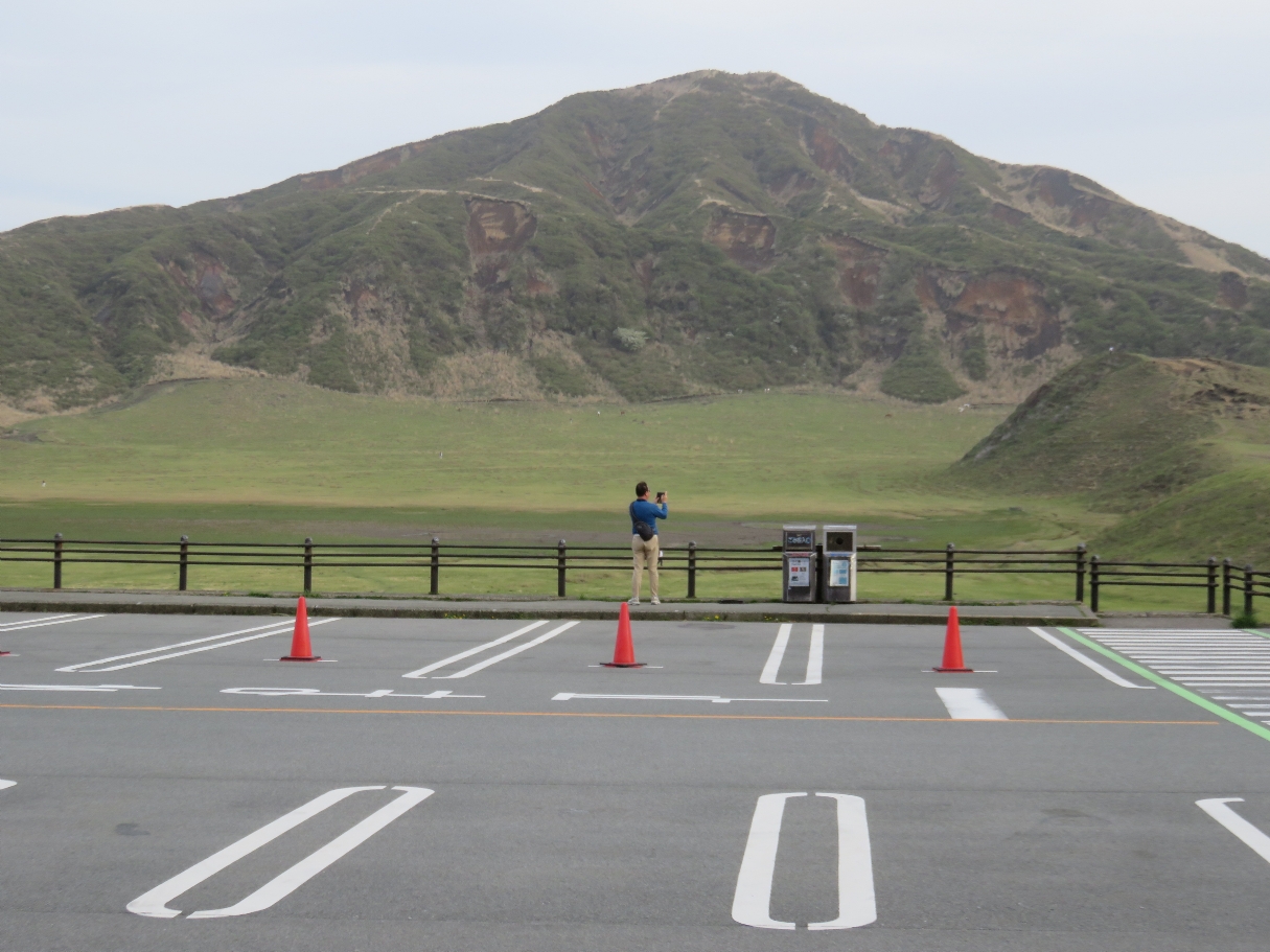 阿蘇山の草千里の阿蘇火山博物館前から烏帽子岳を望む(2024/4/19) |