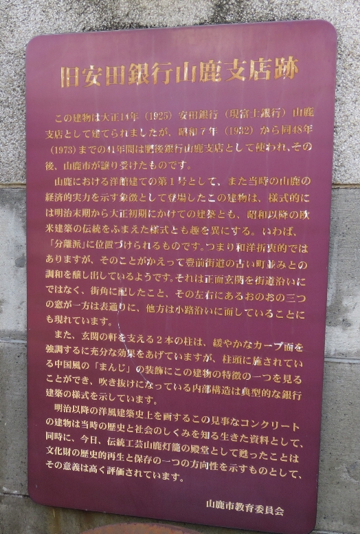 山鹿市の山鹿灯籠民芸館は旧安田銀行山鹿支店だった。(2024/4/16) |