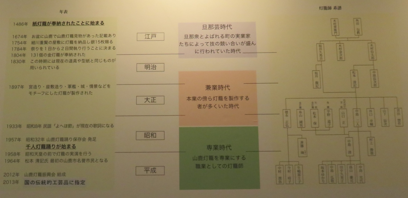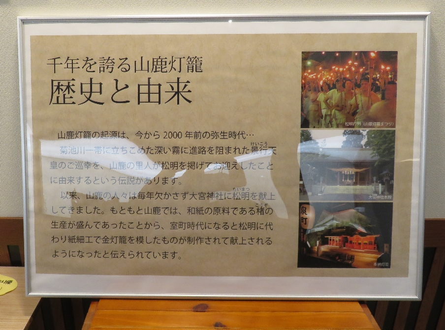 山鹿市の山鹿灯籠民芸館の山鹿灯籠の歴史の説明版(2024/4/16) |