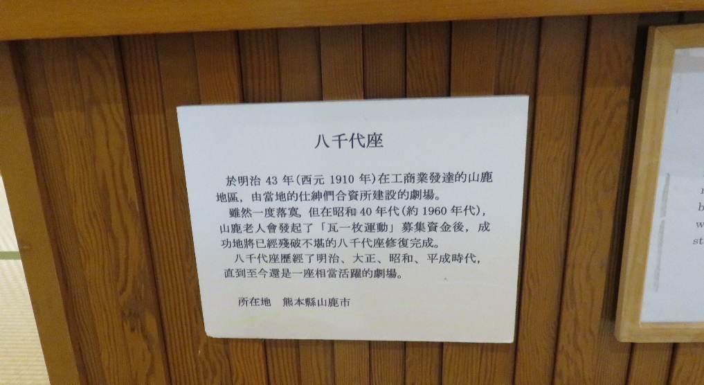 山鹿市の山鹿灯籠民芸館の山鹿灯籠の説明版と作品(2024/4/16) |