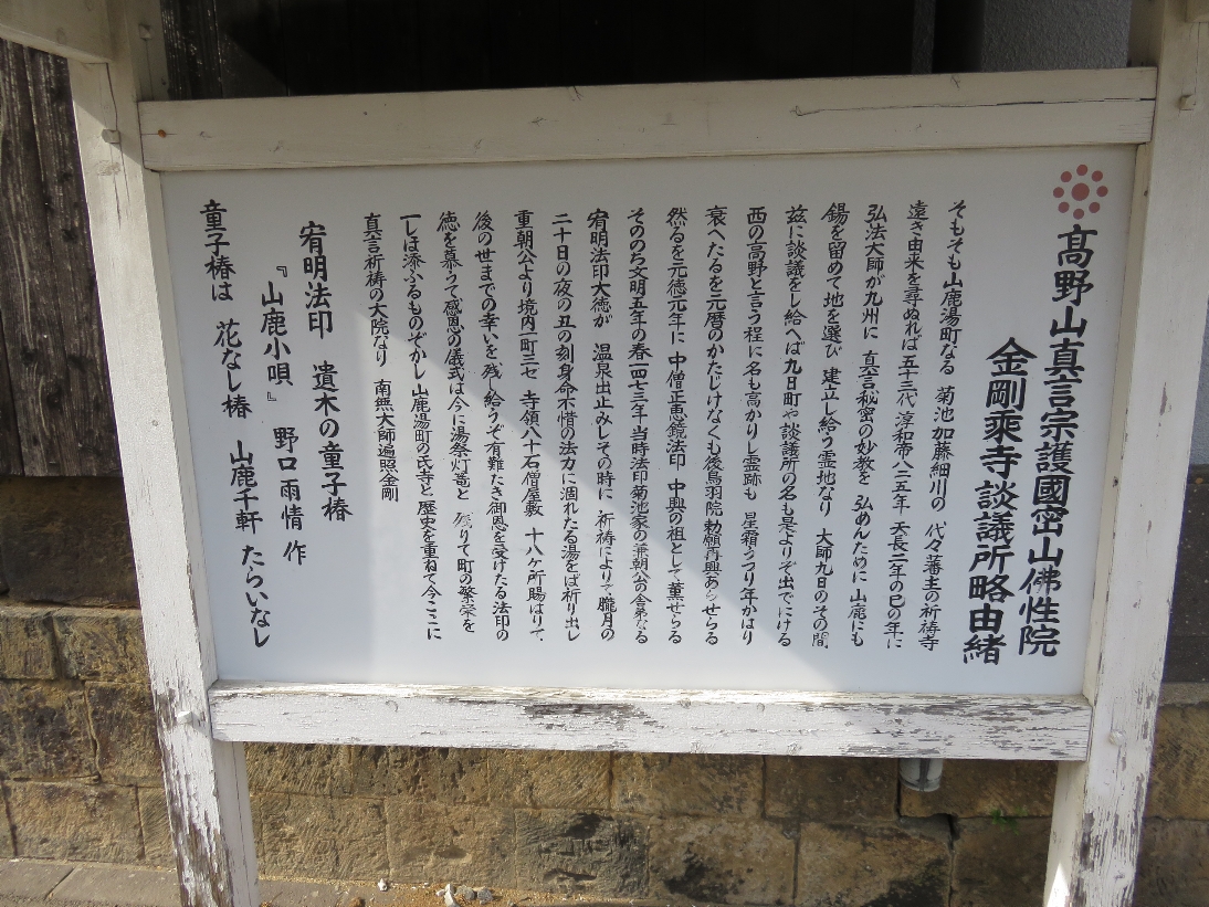 山鹿市の金剛乗寺の石門手前の説明版(2024/4/16) |