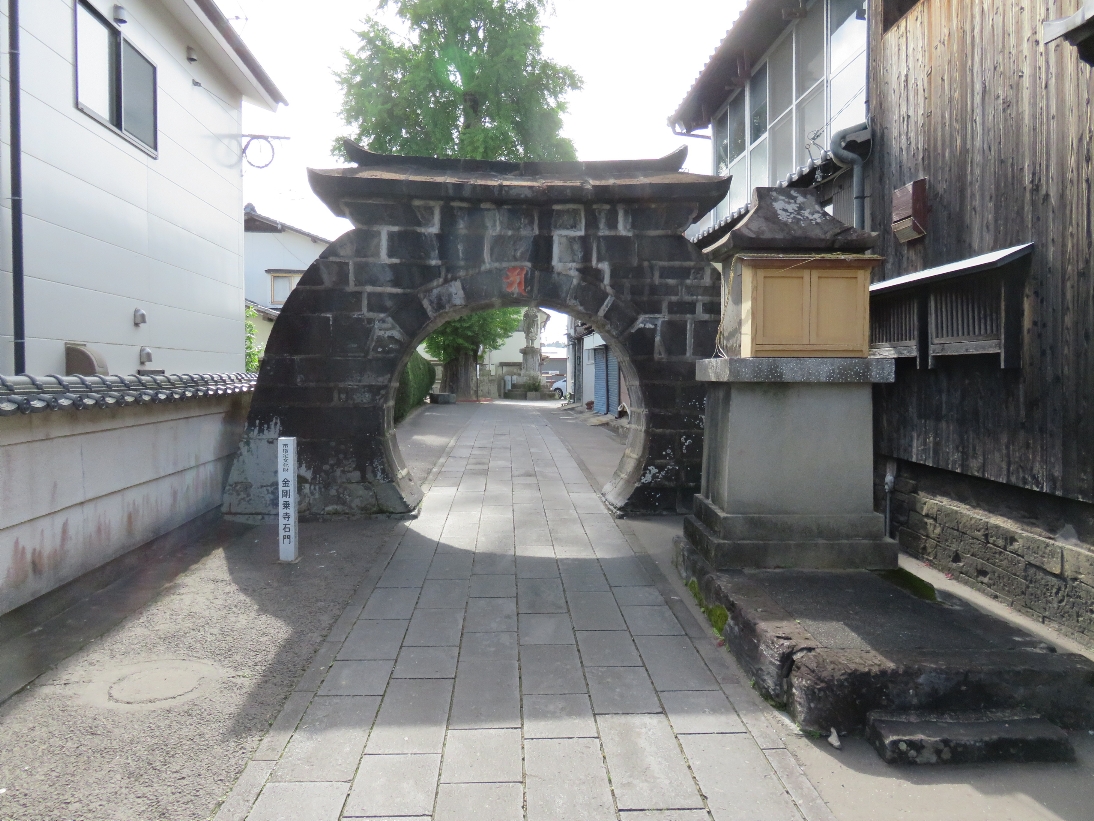 ●山鹿市の護国山金剛乗寺の石門・・・・・石門は、文化元年(1804)に石工・甚吉によって造られたもので、凝灰岩の切石を使った円形の門です。昭和50年2月、市の別文化財に指定されました。異国を思わせるようなデザインは町の人々に親しまれています。(山鹿探訪なびHPより)