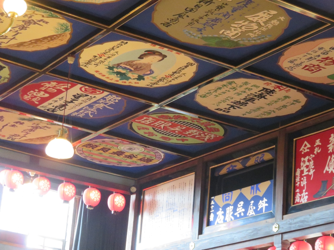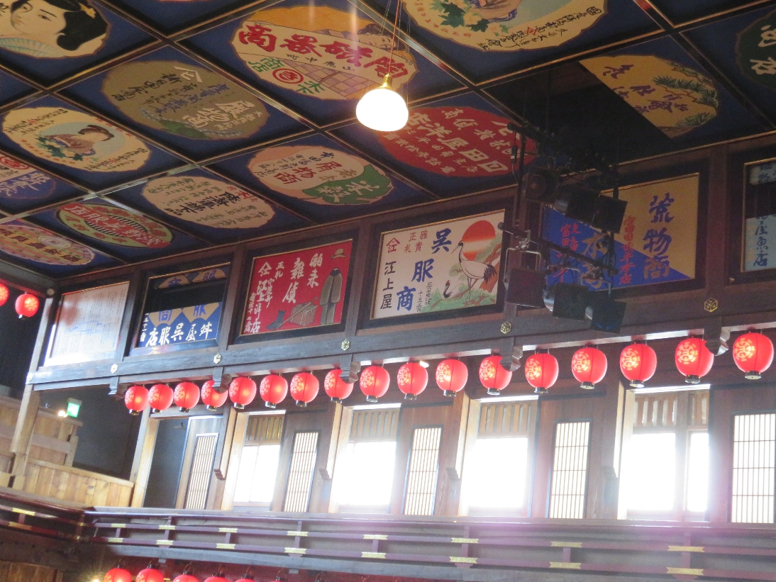 山鹿市の八千代座の天井や横に描かれた看板(2024/4/16) |