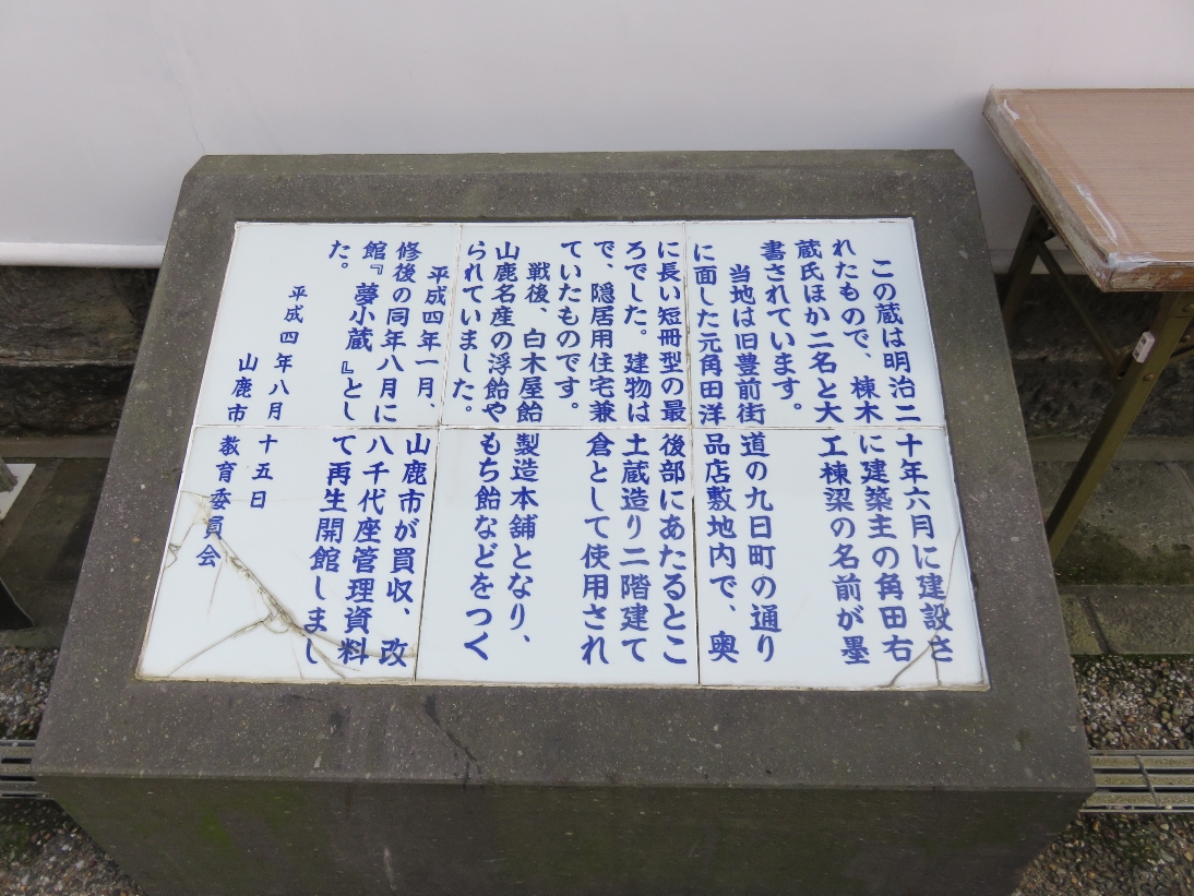 山鹿市の八千代座の相迎の夢小蔵の説明版(2024/4/16) |