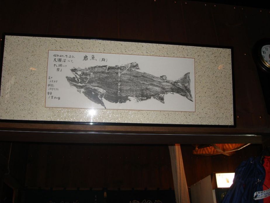 | 長蔵小屋にある尾瀬沼で獲れたいわなの魚拓(長さ二尺二寸) 2006/10/8 |