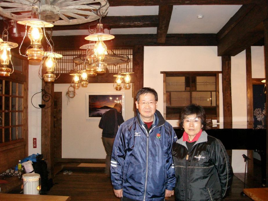 | 今夜の泊まりの長蔵小屋別館のピアノの前にて 2006/10/8 |