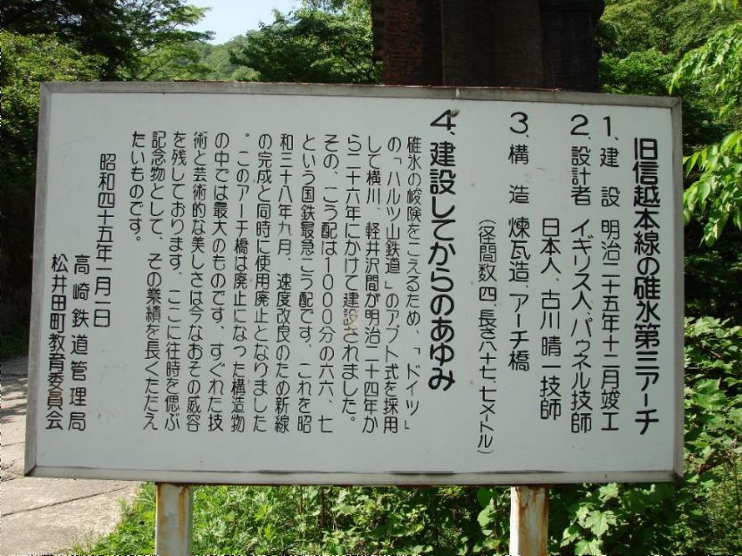 群馬県の碓氷峠のめがね橋の説明(2007/5/27) |