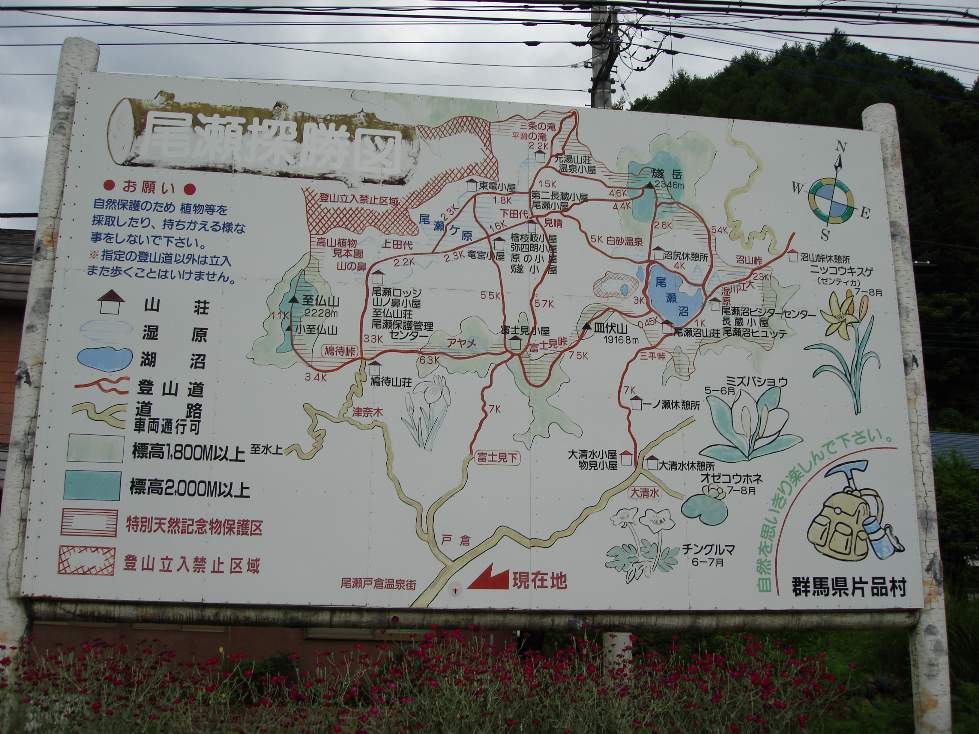 | 片品村の尾瀬の登山口の案内板 2006/7/15 |